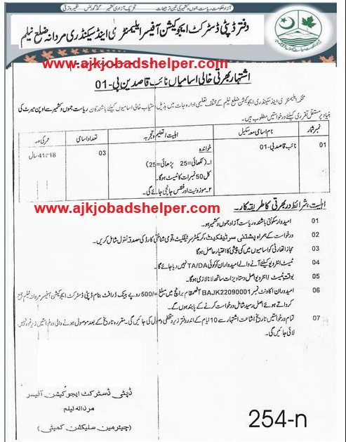 Applications are required District Headquarters Hospital Palandri (Sidhanoti), AJK Office of Deputy Director of Agriculture Extension, Mirpur District, Azad Kashmir