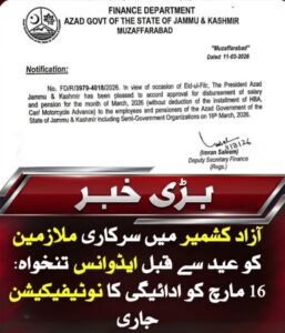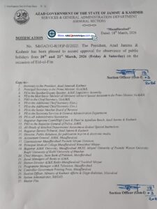 آزاد حکومت ریاست جموں و کشمیر کے “سروسز اینڈ جنرل ایڈمنسٹریشن ڈیپارٹمنٹ” کی جانب سے [...]