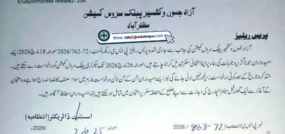 AJK Jobs, AJK PSC, News & InformationChange Exam Center Of AJK PSC Posted on March 25, 2026 by ajkjobadshelper 25 Mar ajkjobadshelper Need Coordinator at Baitul Mamoor High School, Muzaffarabad