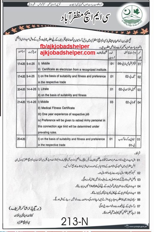 AJK JobsCMH Muzaffarabad Job Posted on March 11, 2026March 11, 2026 by ajkjobadshelper 11 Mar ajkjobadshelper DEO (F) Office Kotli Job Pakistan Expo Center Job