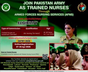 JOIN PAKISTAN ARMY IN ARMED FORCES NURSING SERVICE (AFNS) AS TRAINED NURSES ENTRY 1st HALF 2026