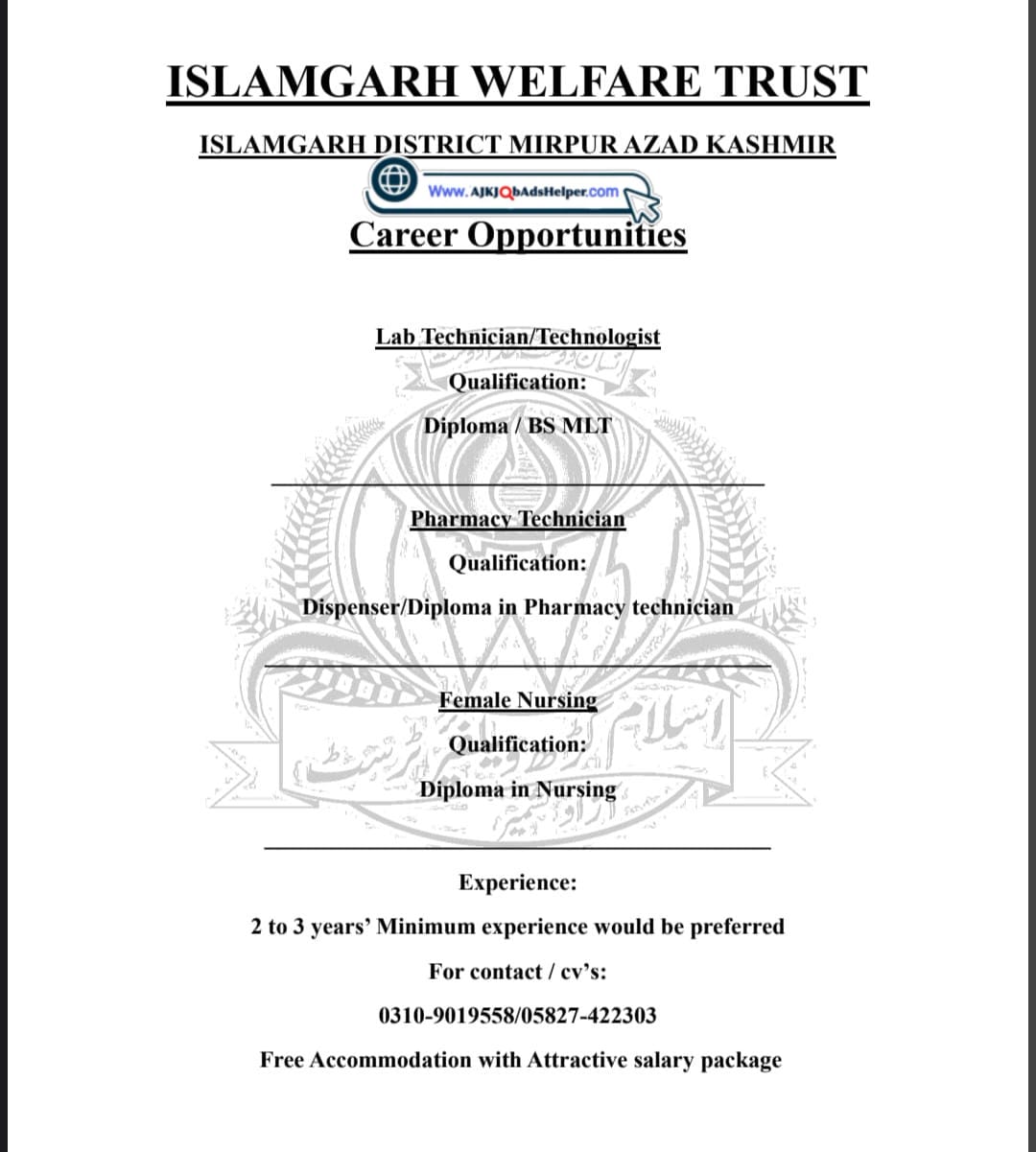 AJK Private JobsJob In Islamgarh Welfare Trust, Mirpur Posted on March 12, 2026 by ajkjobadshelper 12 Mar ajkjobadshelper Math Teacher Required in The Educator Muzaffarabad Declaration of Government Department as essental services