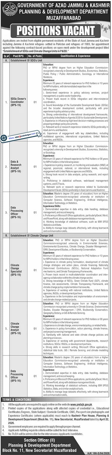 AJK Jobs, AJK Governments JobsJob Positions At Planning And Development Department, Muzaffarabad Posted on April 9, 2026 by ajkjobadshelper 09 Apr ajkjobadshelper SPEECH THERAPIST WANTED at JAZBA ARMY PUBLIC SPECIAL SCHOOL, MUZAFFARABAD Need Associated Professor at NUML Campus, Mirpur AJK