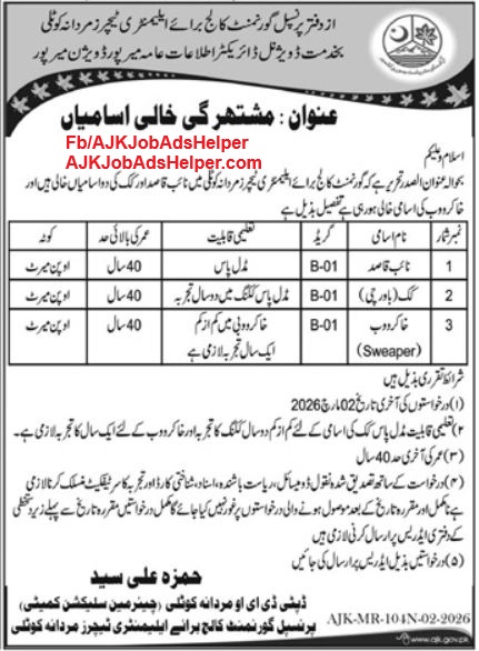 | Vacancy Location: | Mirpur, AJK |