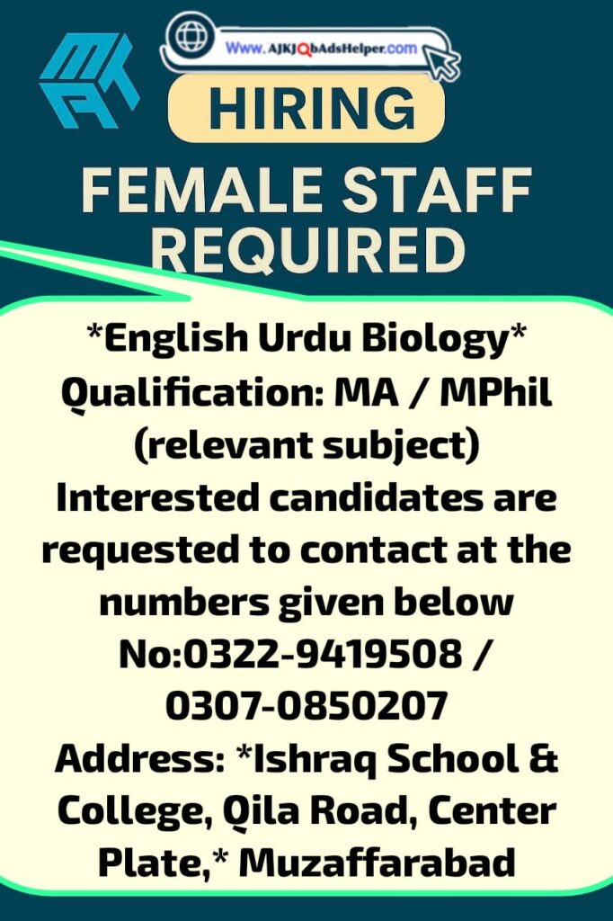 Address: *Ishraq School & College,Qila Road, Center Plate,* Muzaffarabad
