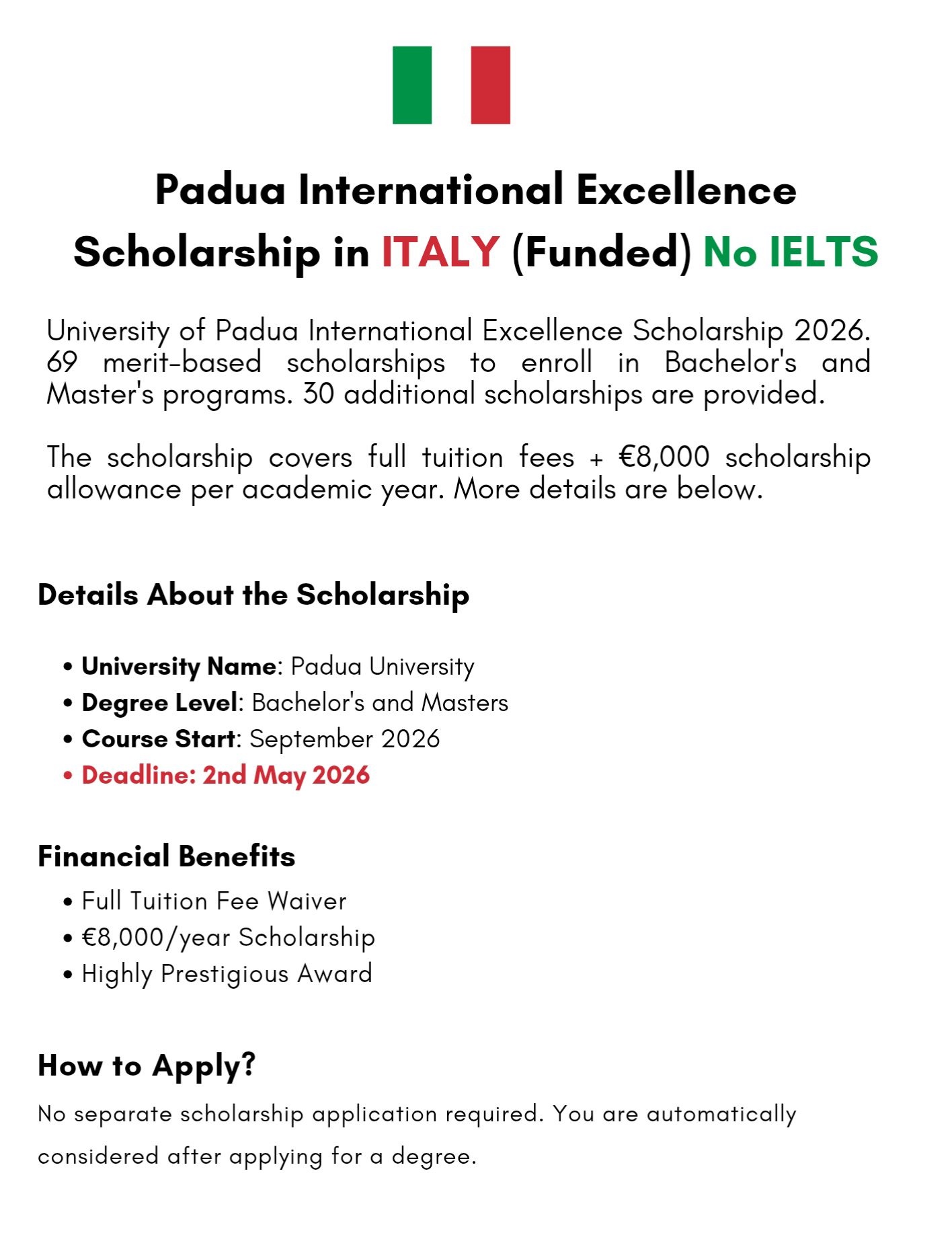 How to Apply for the University of Padua International Excellence Scholarship 2026?