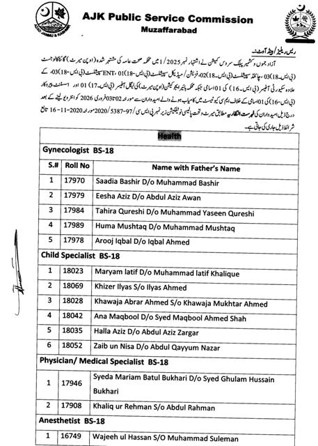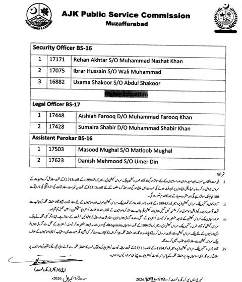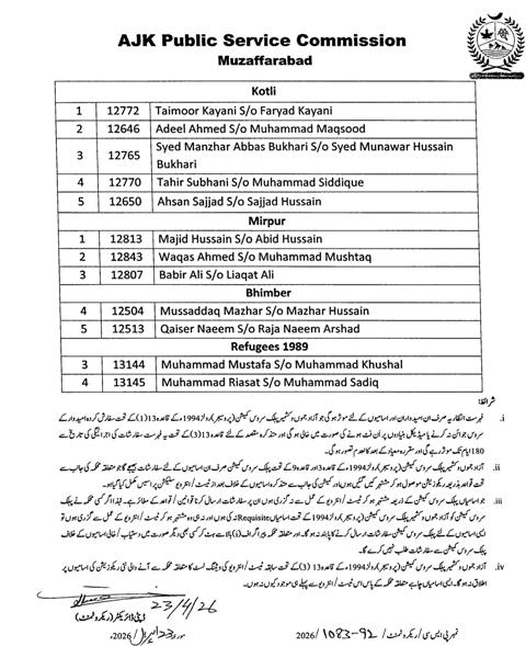 Notice to Candidates, Directorate of Wildlife and Fisheries Muzaffarabad, AJK Notice of Cancellation Test Interview Health Department, DHO Office, Kotli